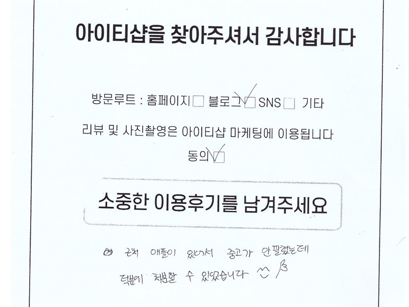 아이맥 21.5인치 마포 홍대 아이티샵 방문 이용후기 c○○ 2024-03-12 조회수 : 1,538 |